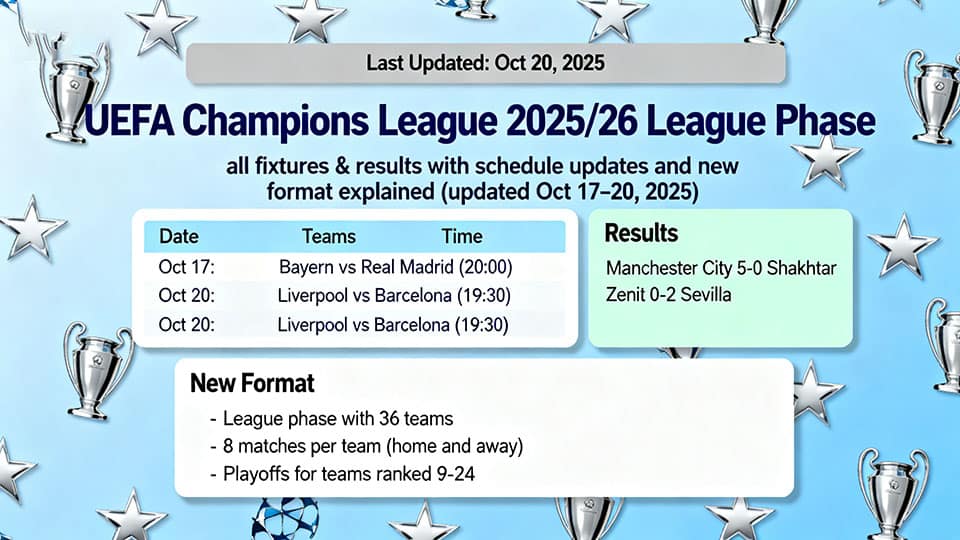 The highly anticipated UEFA Champions League 2025/26 season marks a historic shift with the full implementation of its restructured league phase, replacing the traditional group stage format. Under the new system, 36 clubs compete in a single-league table, each playing eight matches—four at home and four away—against carefully scheduled opponents determined by seeding positions. This expanded format aims to maximize competitive balance and commercial revenue, eliminating the randomness of group draws while ensuring marquee fixtures in every matchweek. The October 17–20, 2025 updates reflect critical adjustments to fixture scheduling following logistical negotiations between UEFA and participating domestic leagues, particularly accommodating clubs involved in concurrent international tournaments.